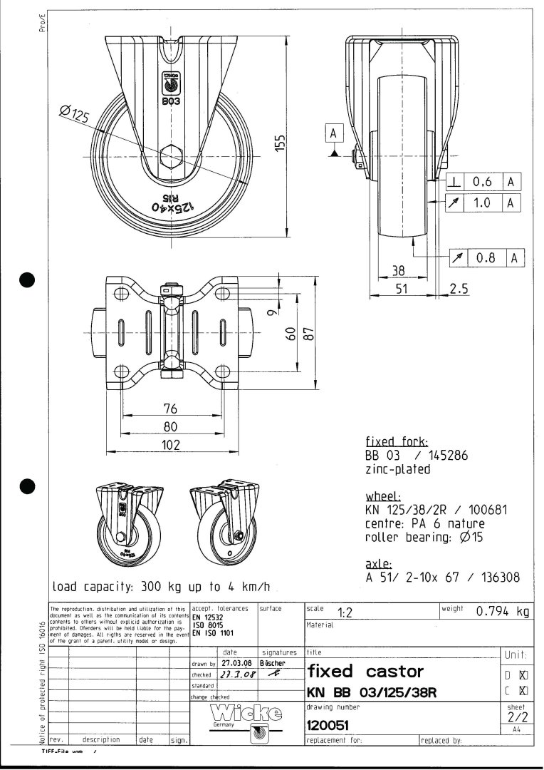 <p><span style="caret-color: rgb(36, 36, 36); color: rgb(36, 36, 36); font-family: Aptos, sans-serif; font-size: 14.666667px;">Wicke KN BB 03/125/38R Fixed Castor fitted with Blue nylon Wheel </span></p><p><font color="#242424" face="Aptos, sans-serif"><span style="caret-color: rgb(36, 36, 36); font-size: 14.666667px;">see attached drawing for dimensions </span></font><br></p>