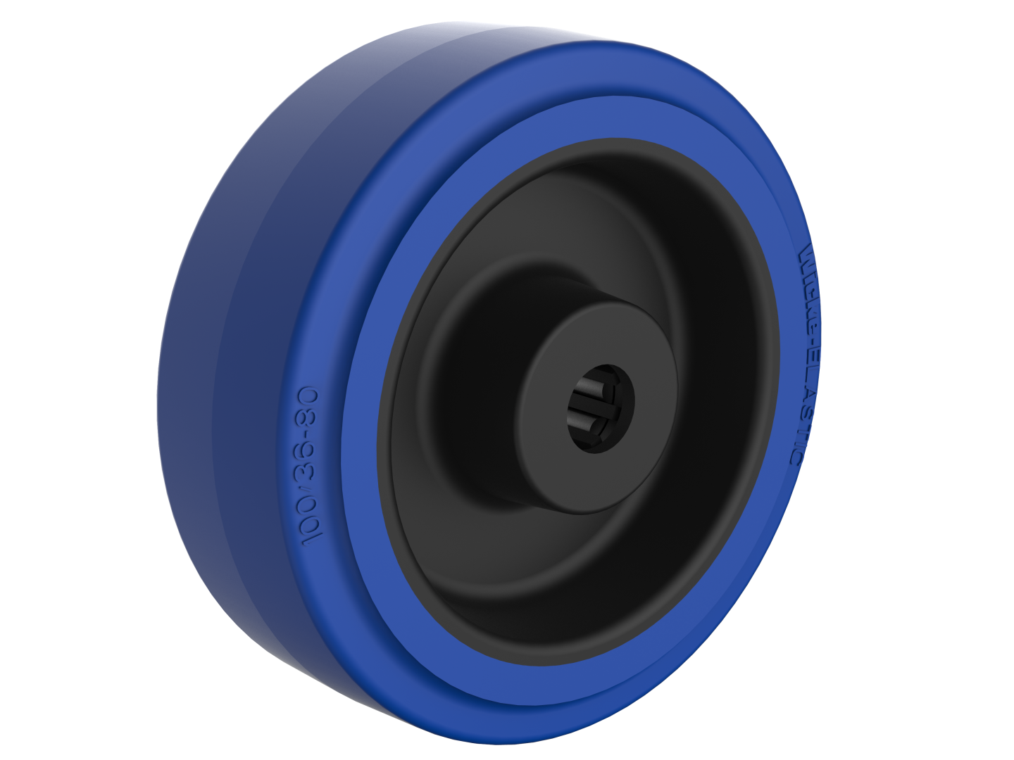 Wheels of the series BN are made of a one-piece Polyamide wheel center with a directly vulcanized high quality blue Wicke – ELASTIC® rubber tyre with 63 Shore A hardness. The wheels are available with roller bearing.