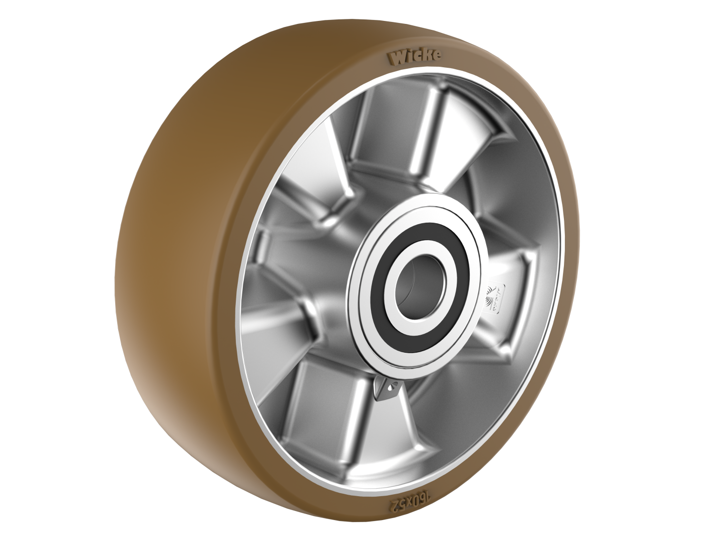 Wheels of the serie PE are made of a one-piece aluminum die cast Wheel centre with a vulcanized polyurethane Wicke – Topthane® 92 Shore A tyre. The Topthane® tyre is bonded to the Wheel centre with a special bonding agent. The tyre is abrasion resistant with low starting and rolling resistance. The tyre is cut proof and has good tear strength. The Wheels are with ball bearings.